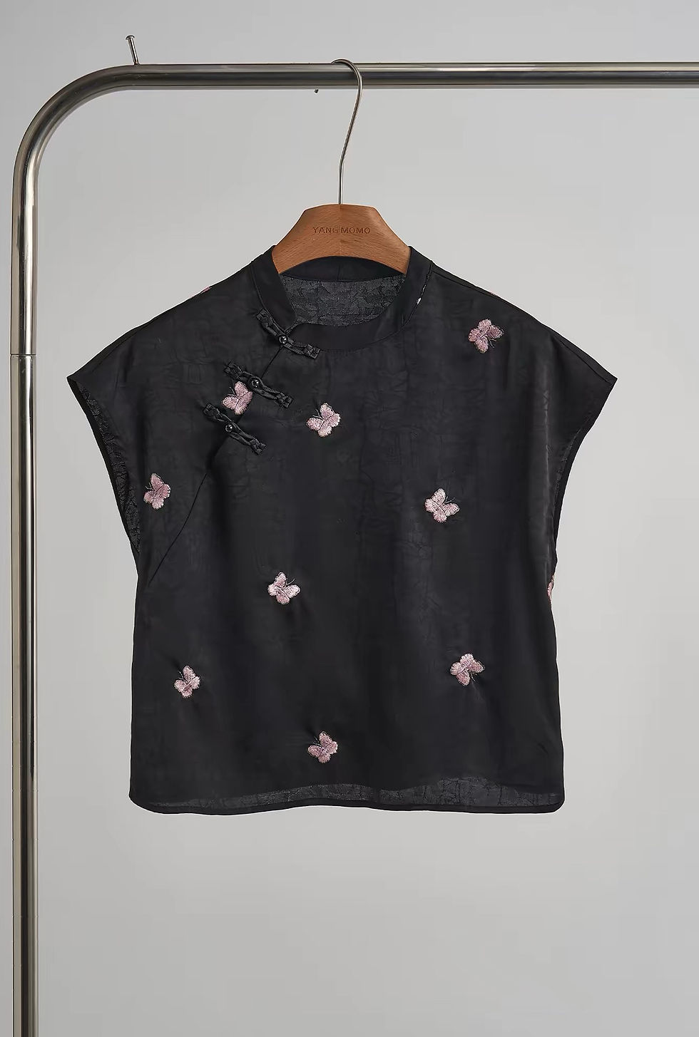 A refined top inspired by traditional Chinese aesthetics, blending contemporary design with timeless elegance.